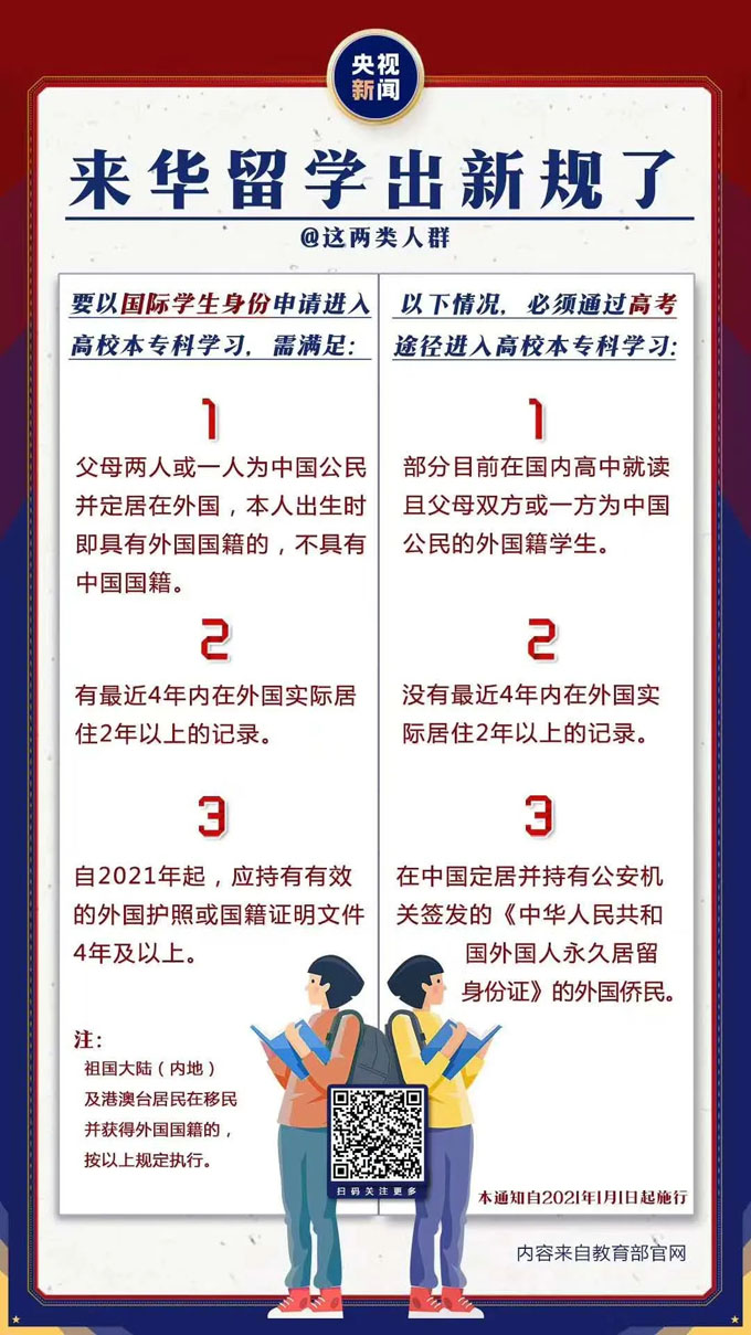 6月10日,教育部发布《关于规范我高等学校接受国际学生有关工作的通知》,对国际学生进入中国高等院校本专科阶段学习的申请资格进行调整。通知自2021年1月1日起施行,有哪些重要变化?