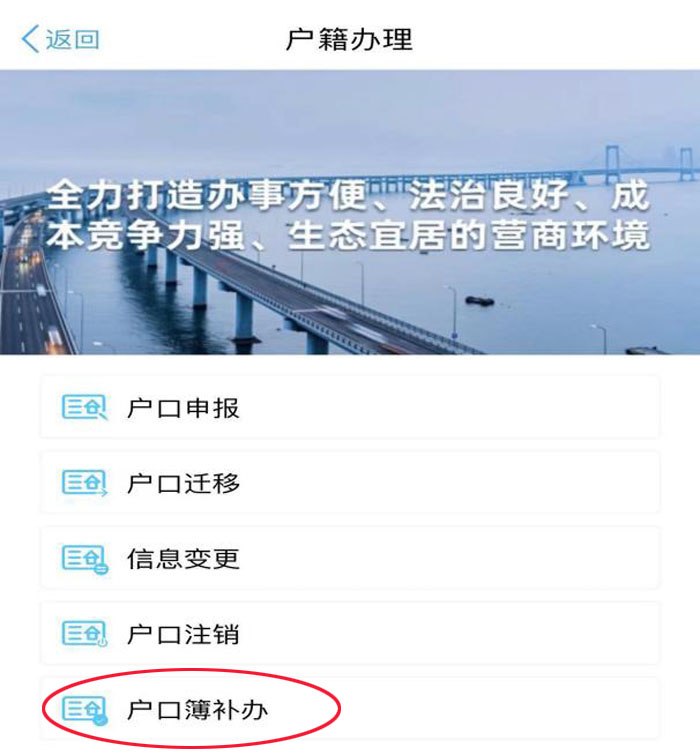 2、 点击【户口簿补办】