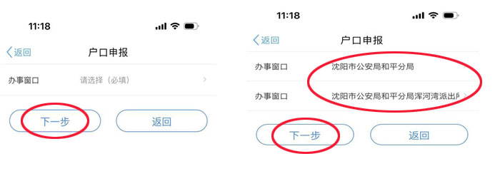 4、选择您户口所在区、户口所在派出所,点击【下一步】