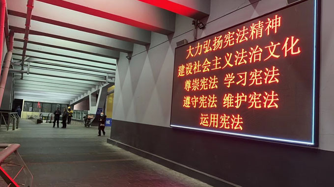 同时,利用重点街路、公交地铁、社区村屯、广场街道的户外电子屏滚动播出宣传标语和主题海报。