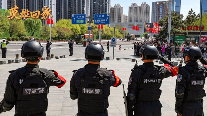 藏蓝沿线护卫,铁骑忠诚护航。我们,以最高礼遇迎接“最可爱的人”回家。