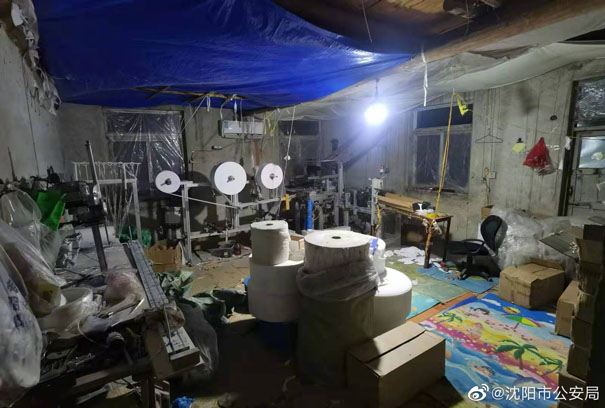 2月3日13时许,警方迅速出击,在沈河区某小区内将井某抓获。根据井某供述,当晚20时许,警方在浑南区某地查获一黑加工点,当场扣押假冒注册商标的成品口罩2万只、半成品口罩6万余只,用于生产口罩的机器设备10余台,口罩原料无纺布150余捆,以及涉案车辆2台,涉案总价值100余万元。