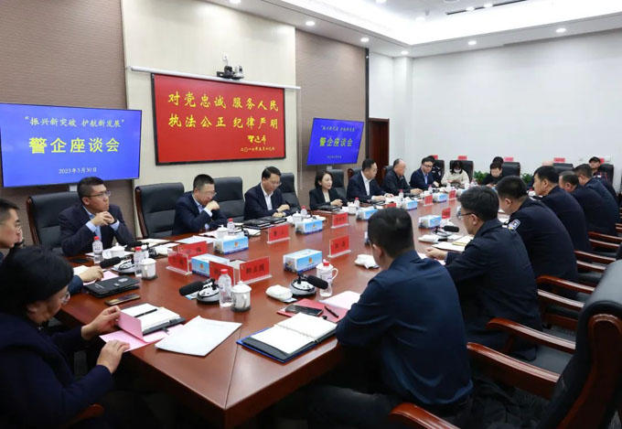 3月30日下午,沈阳市公安局召开“振兴新突破护航新发展”警企座谈会,向企业家代表介绍了过去一年来公安工作取得的成效和今年的工作举措,就即将推出的“服务保障民营经济健康发展高质量发展21项措施”,与参会企业家代表进行座谈交流,征求意见建议。会议由市局党委委员、政治部主任丰学岩主持,市局党委副书记、分管日常工作的副局长朱朝键出席会议并讲话。