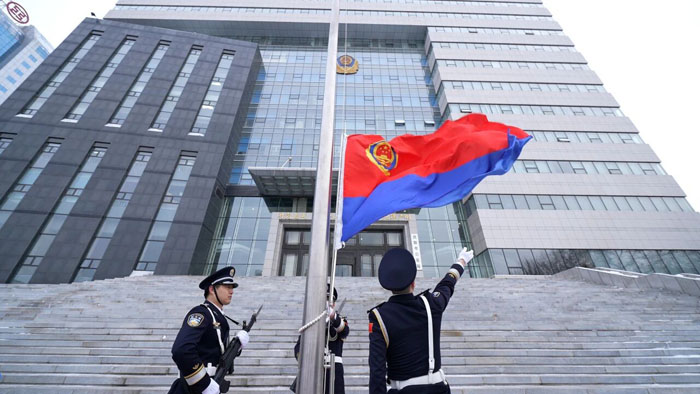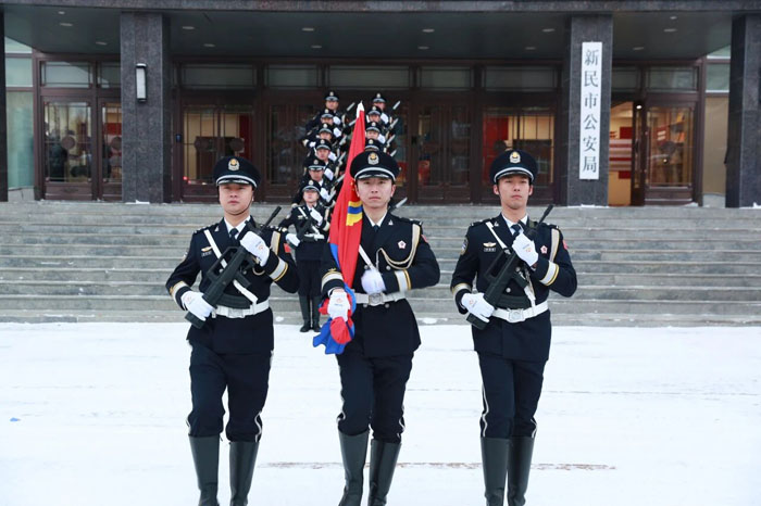 新民市公安局举行升警旗仪式,警旗在礼兵的护卫下缓缓升起,猎猎迎风、熠熠生辉。