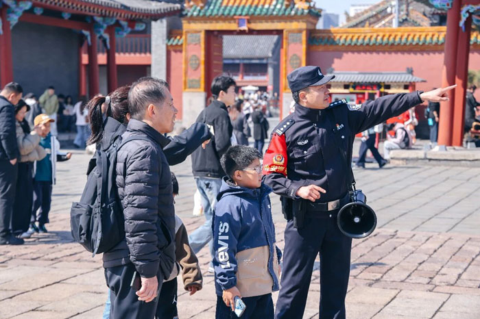 “能不能帮我们照张相片?”作为外地游客来沈必打卡的核心地标,沈阳中街热闹非凡,摩肩接踵的人流中,沈河分局执勤民警的身影格外醒目。他们在人流密集路段定点值守、动态巡逻,目光时刻关注着现场情况,第一时间响应群众各类需求,用温情服务温暖每一位游客。