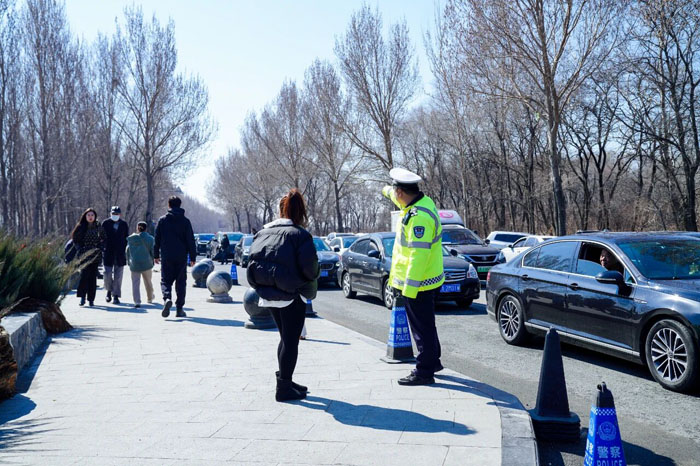 “上山请勿携带火种,咱们共同守护山林安全,文明祭祀。”“直行50米左转就能看到墓园入口,注意安全。”执勤民警的暖心提醒不绝于耳,一句句叮嘱、一次次指引,化作春日里最动人的温情,这样的暖心场景贯穿整个假期始终。