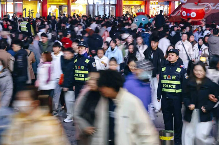 “警察同志,地铁站怎么走,哪里能寄存行李?”一名外地游客手持地图,轻声向执勤民警咨询。民警面带微笑、耐心指引:“前边右拐就是地铁站,我们警务站就能寄存行李,还能提供应急充电服务,有需要随时来。”“有你们在,我们玩得特别安心!”游客脸上露出笑容,纷纷主动与执勤民警合影留念。