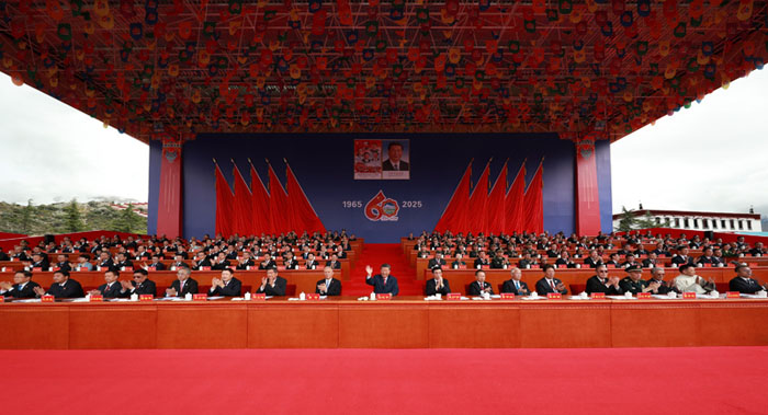 王沪宁发表讲话。他说,1965年9月,在党中央亲切关怀和党的民族政策光辉照耀下,西藏自治区宣告成立。这是西藏发展史上具有划时代意义的大事,巩固了西藏和平解放和民主改革的伟大成果,实现了西藏社会制度的历史性跨越。60年来,西藏经济社会全面发展,民族区域自治制度成功实践,民族团结日益巩固,各族人民生活蒸蒸日上,充分展现了中国共产党领导的坚强力量,充分展现了我国社会主义制度的显著政治优势。