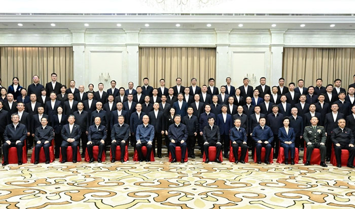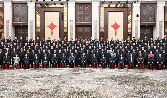 9月23日下午,中共中央总书记、国家主席、中央军委主席习近平在乌鲁木齐亲切接见新疆生产建设兵团领导班子成员及有关方面负责同志,并同大家合影留念。新华社记者 申宏 摄