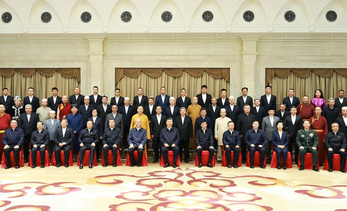 9月23日下午,中共中央总书记、国家主席、中央军委主席习近平在乌鲁木齐亲切接见新疆维吾尔自治区宗教界爱国人士和基层宗教工作干部代表,并同大家合影留念。新华社记者 丁林 摄