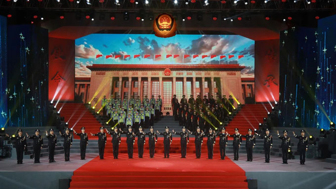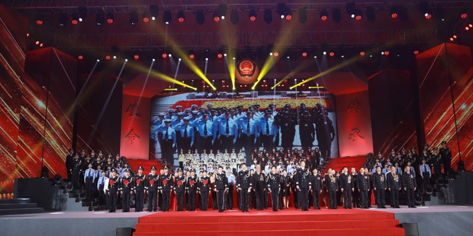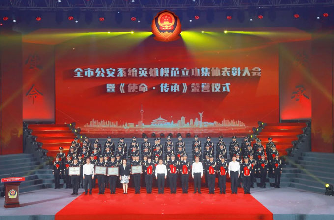 《中国人民警察警歌》旋律响起,全体民警辅警庄严肃立,齐声高唱。全市公安系统英雄模范集体奖励大会暨《使命·传承》荣誉仪式在雄浑激昂的歌声中圆满落下帷幕。