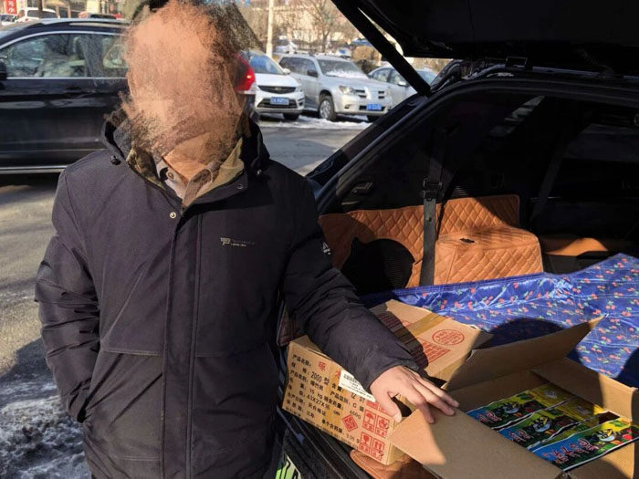 1月2日,大东分局根据线索核查,在某教育机构抓获非法销售烟花的王某。经查,王某自2024年起从正规零售店进货后,私自向多家超市“转卖”牟利,非法获利达1万余元,目前已被依法予以刑事拘留。
