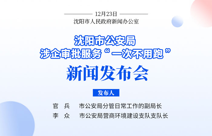 沈阳市公安局涉企审批服务“一次不用跑”新闻发布会于12月23日召开,市公安局分管日常工作的副局长官兵介绍情况。