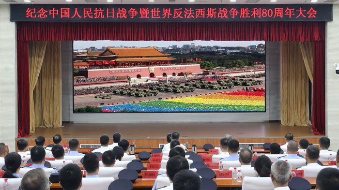 升旗仪式后,全局各单位组织集中收听收看纪念中国人民抗日战争暨世界反法西斯战争胜利80周年大会。